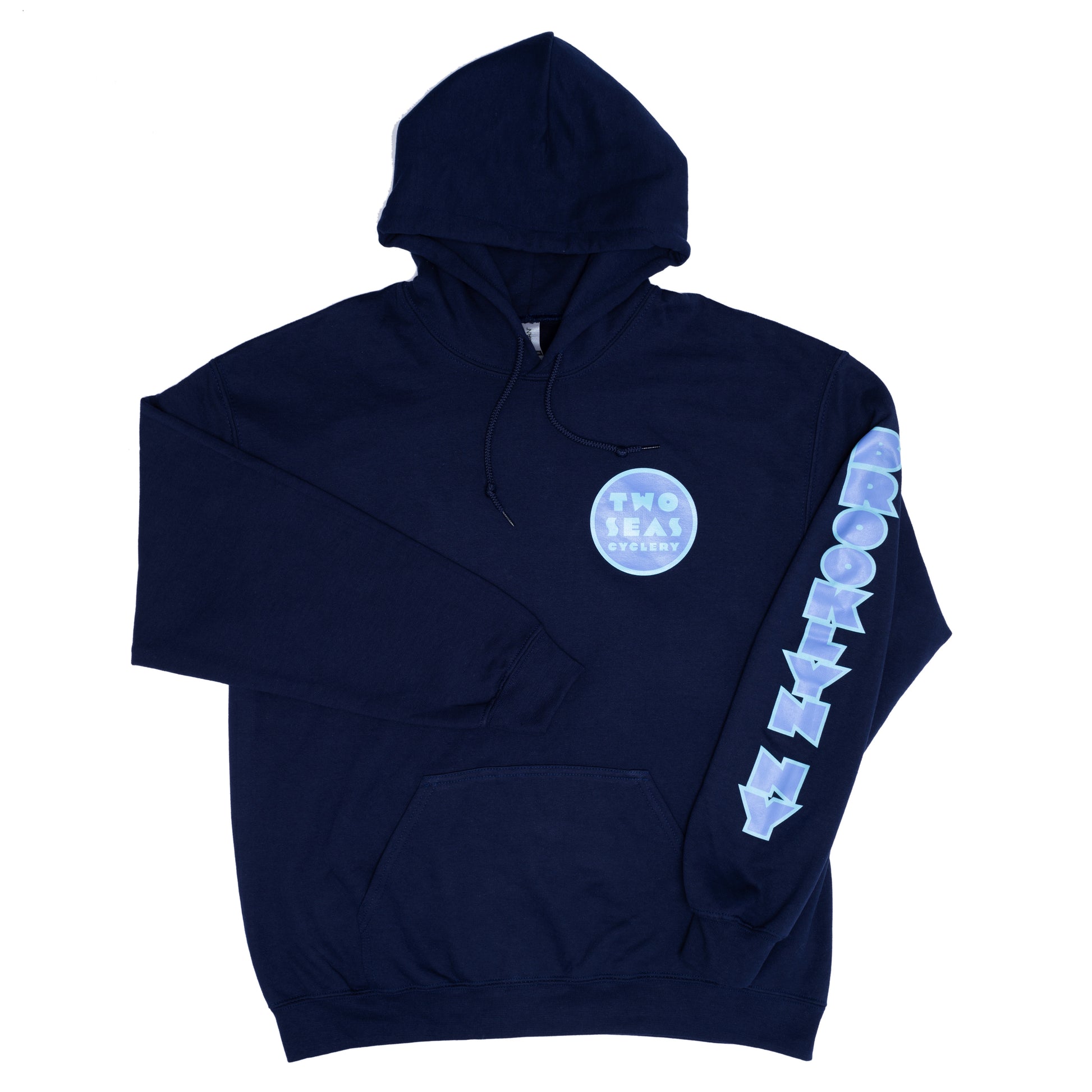 Screenprinted by Silky's Screen Printing right here in Brooklyn, NY onto Navy Gildan 18500 Heavy Blend Hooded Sweatshirt