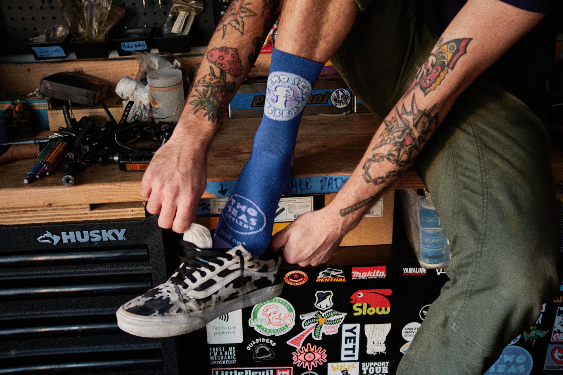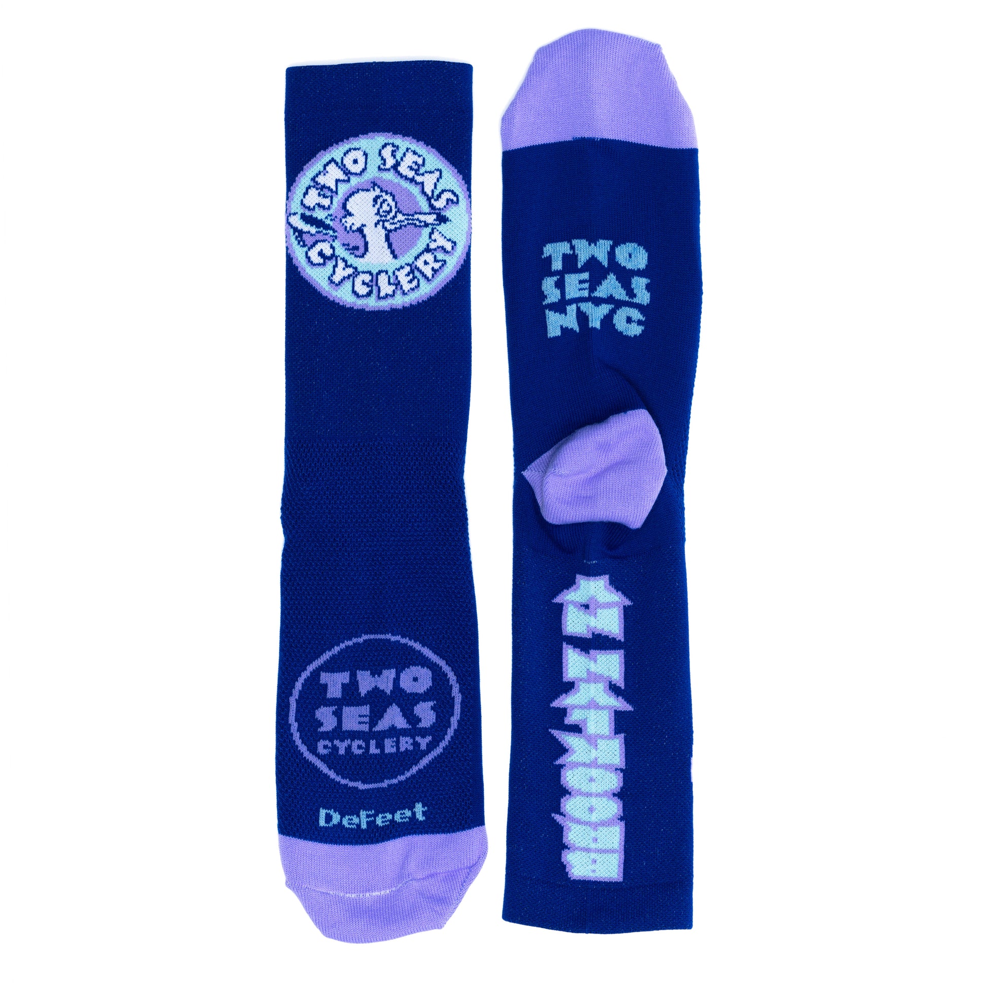 Design by Flatbush Brown onto Defeet Aireator 6" Socks